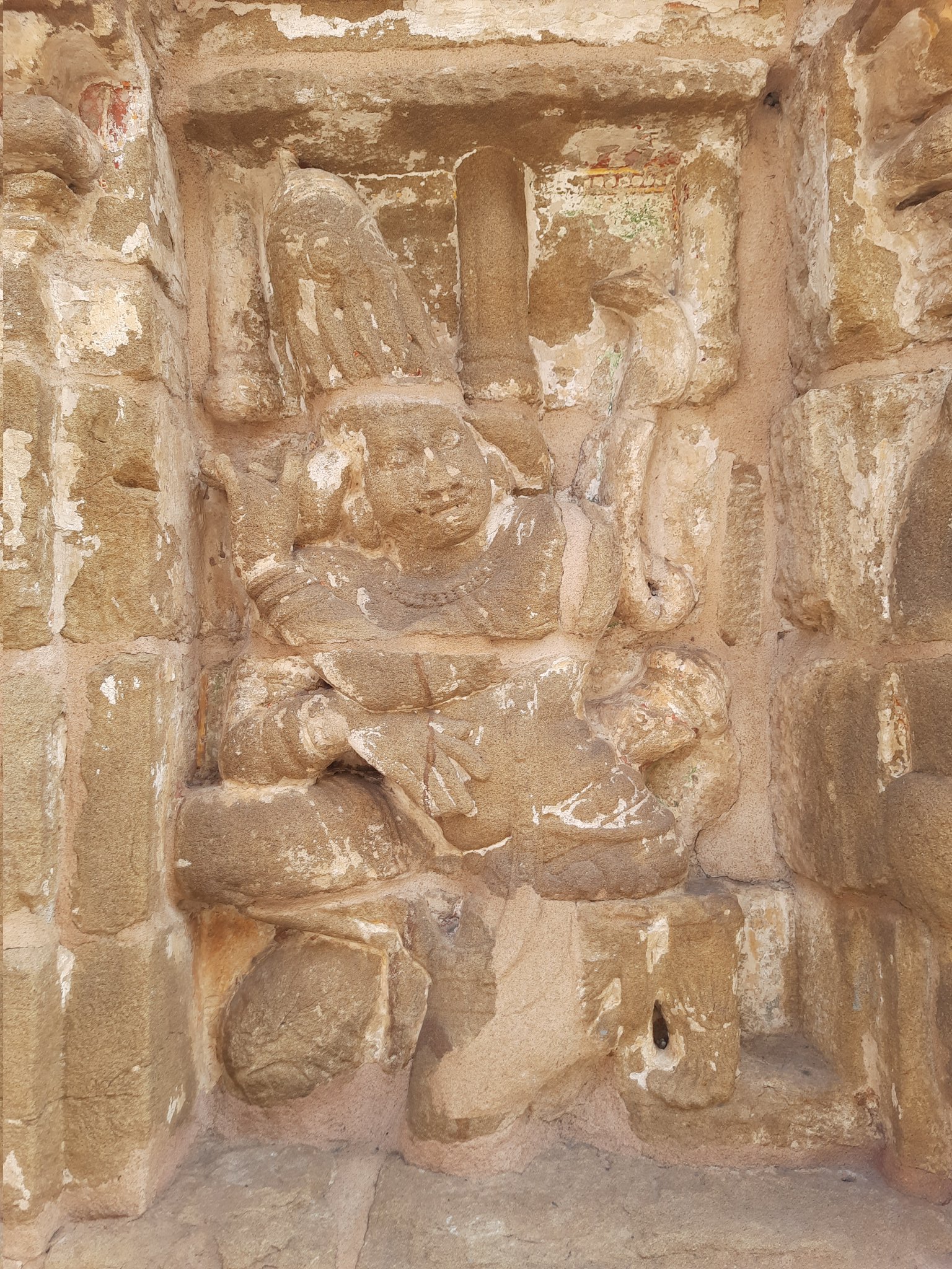 Lastly this Anga Alaya in the north west direction shows Shiva as Tripurantaka as he sets out riding his chariot to destroy the cities of Tripurasura. The wheels of the chariot are also visible here.