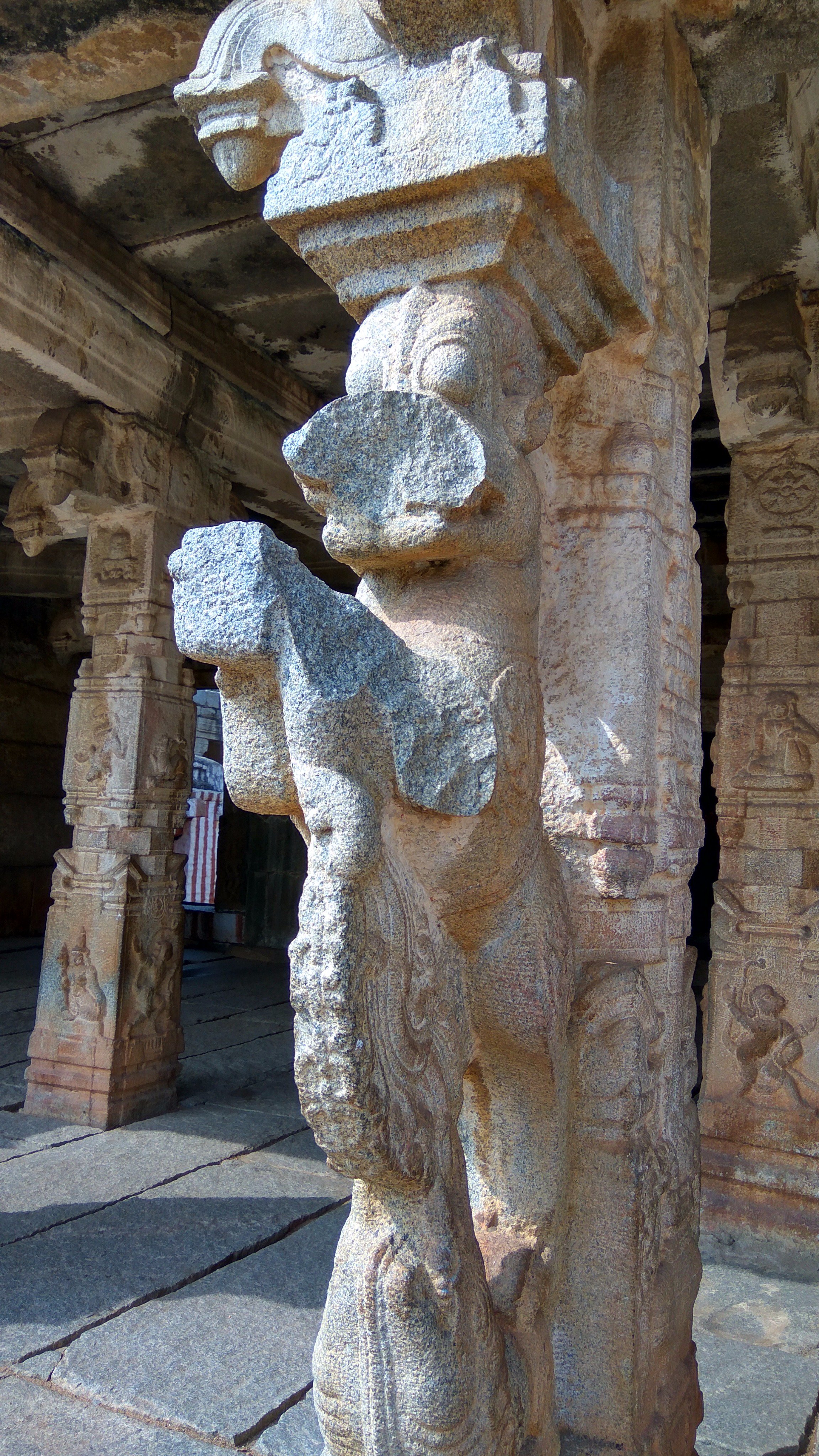 At the base of the murthi you can also notice the carvings of Vahanas of both Shiva & Vishnu. Vrishaba & Garuda. While the Shiva part holds a Abhayamudra (gesture of reassurance), Vishnu holds the Varadhamudra(gesture of boon giving)