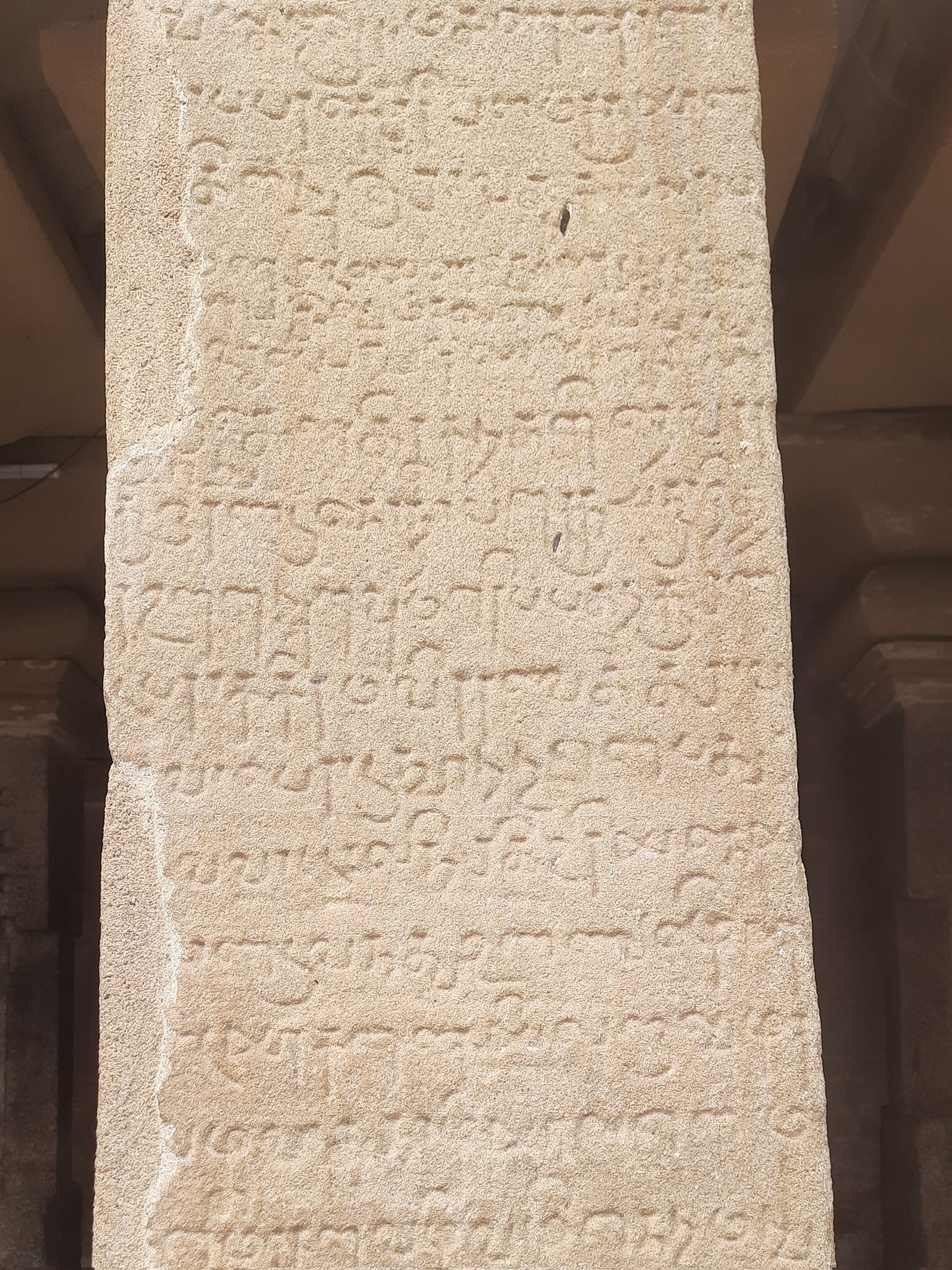 The front Mantapa has a number of important inscriptions, including that of Chalukyan king Vikramaditya. When he defeated Pallava Nandivarman, he was enchanted by the beauty of this temple & made huge gifts of gold. The inscription records the gift.